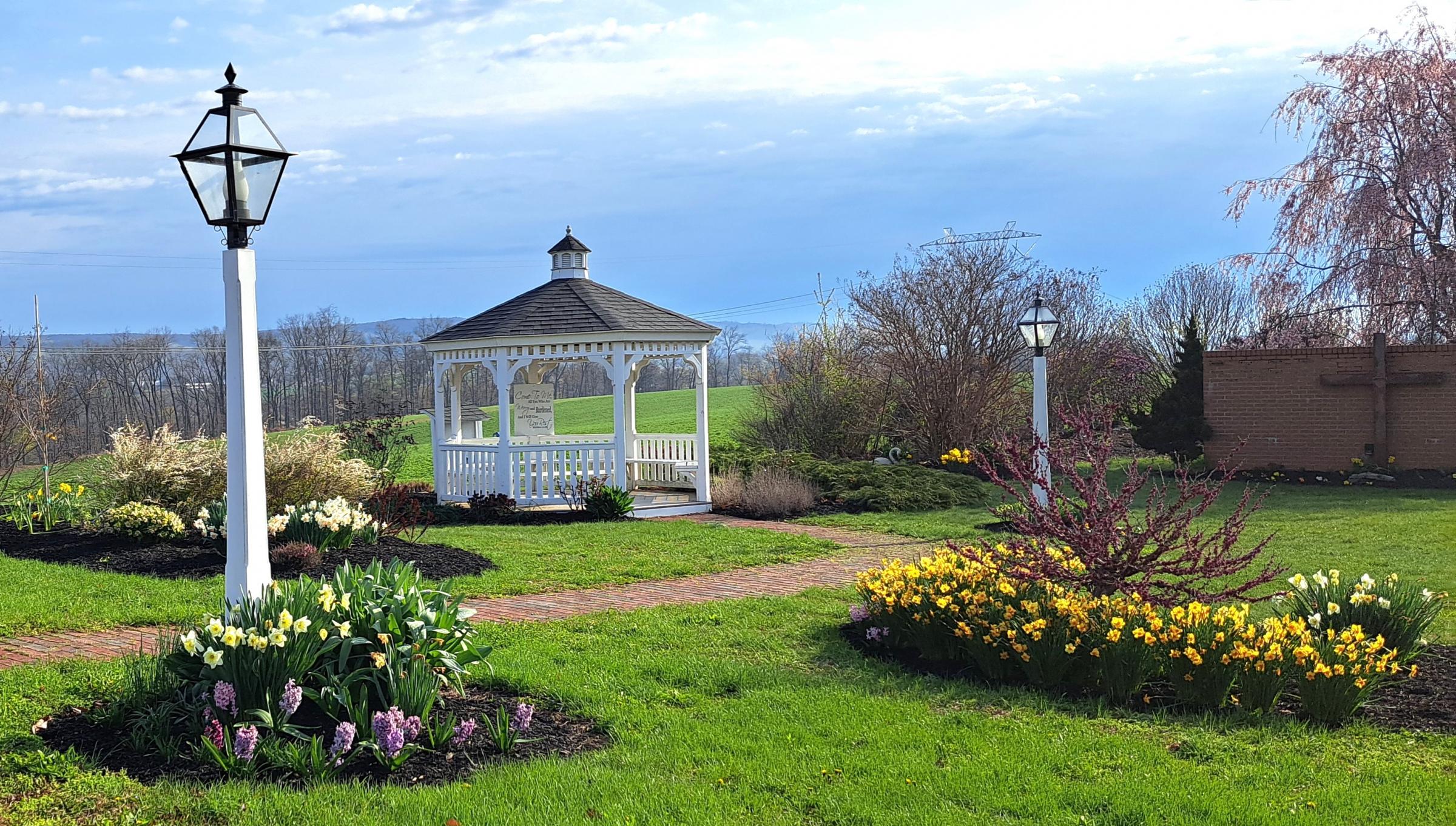 Matthew 11:28-30. "Are you tired? Worn out? Burned out on religion? Come to me. Get away with me and you'll recover your life. I'll show you how to take a real rest." Rest with God while remembering loved ones in the gazebo.